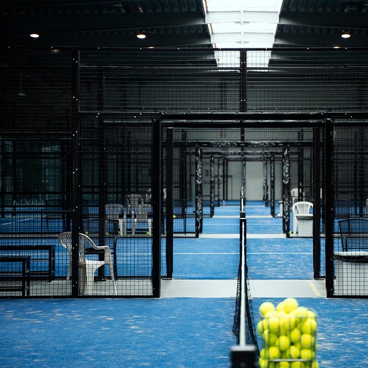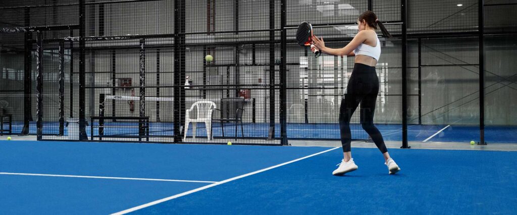 Most modern courts, including ours, use artificial turf designed specifically for padel. This surface balances grip and ball bounce, allowing players of all levels to perform consistent shots without slipping. A minimum overhead clearance of 6 meters is required, though 7–8 meters is preferred for professional installations to accommodate high lobs and smashes.